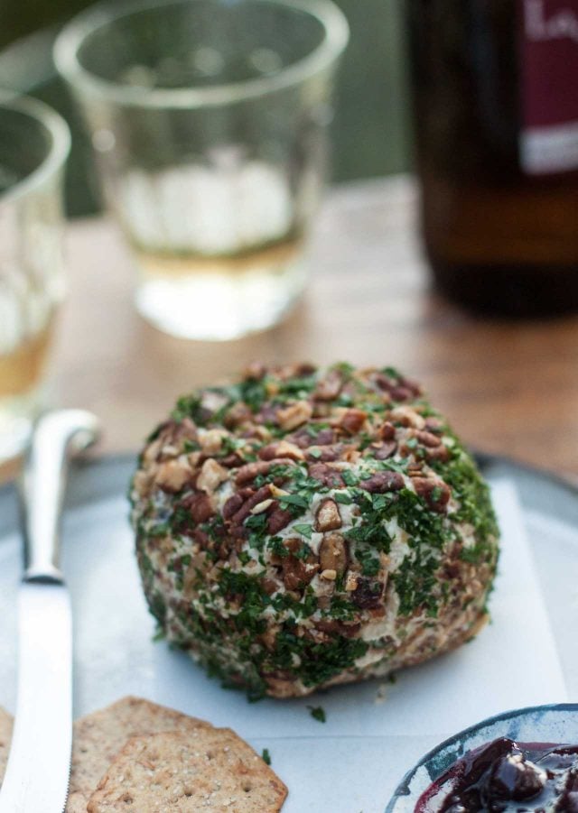 Proving it’s not too late to get on the ball, I tackled this cheese ball made with several kinds of cheeses, along with chives, dates, and a dash of hot sauce, rolled in buttered and salted pecans. If you’re too high up on your horse to consider a cheese ball, Fromage forte is the way the French use up all those scraps of cheese, whipped up with plenty of garlic. It’s great to spread on slices of baguette, or even crisp apples.