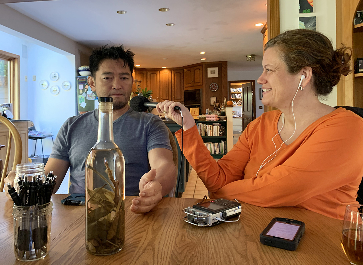 Bun Lai, Cynthia Graber, and Bun’s knotweed vinegar. Photo by Nicola Twilley.