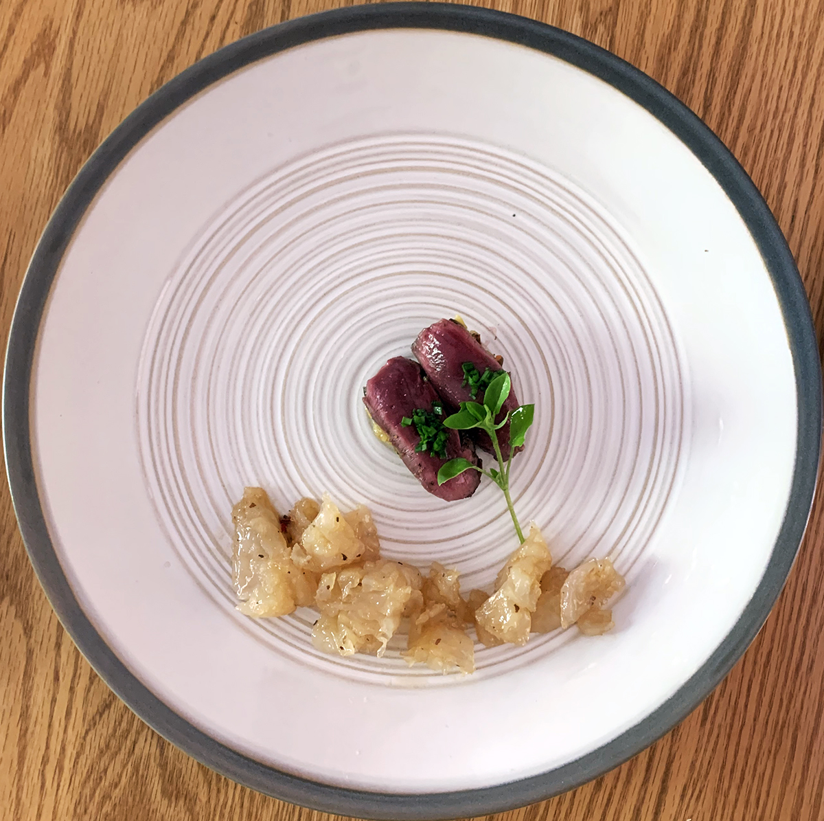 Wild boar sushi with a side of cannonball jellyfish, prepared by chef Bun Lai. Photo by Nicola Twilley.