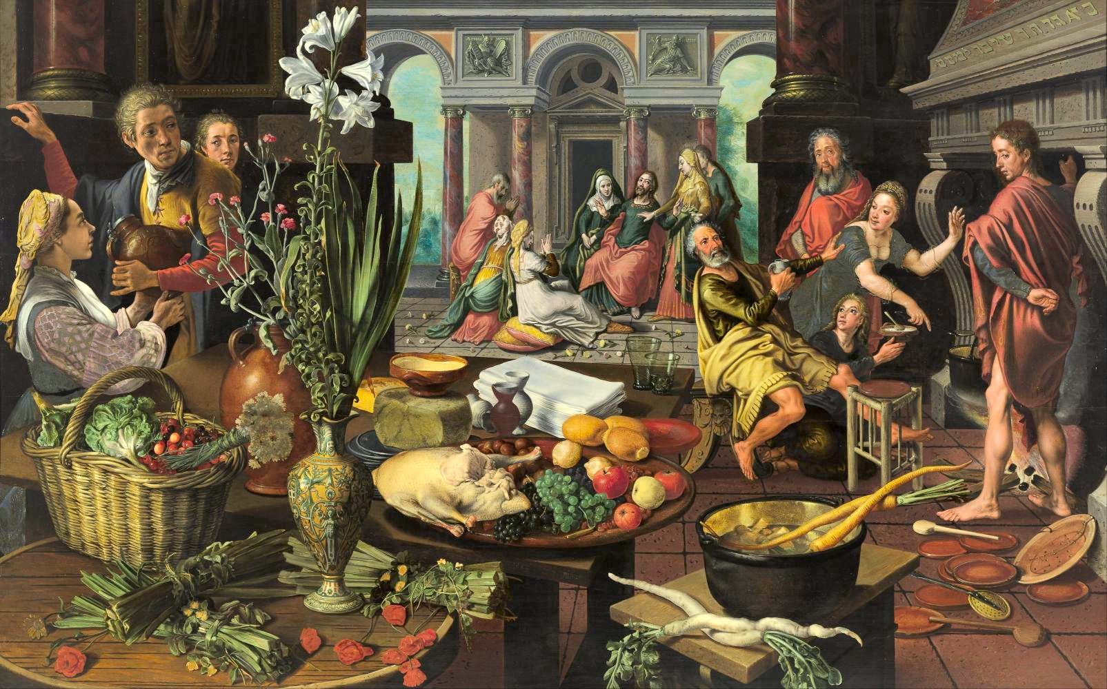 “Christ in the Home of Mary and Martha” by Pieter Aertsen, 1553, (oil on panel), Museum Boijmans Van Beuningen, Rotterdam, via the World Carrot Museum. This painting is one of the earliest depictions of an orange carrot in a work of art. Agronomist Otto Banga’s original paper tracing the appearance of orange-colored carrots to The Netherlands can be found online here; this more recent paper advances the theory that orange carrots actually originated in southern Europe.