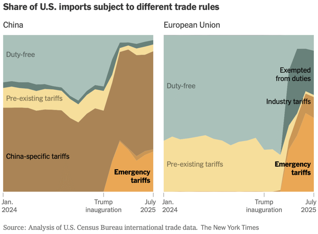 At the beginning of this year, most people probably had little awareness or had even heard of tariffs. That changed quickly with the start of the current administration. For the New York Times, Lazaro Gamio, Keith Collins, and Ana Swanson show the big shifts, which have varied widely by country.